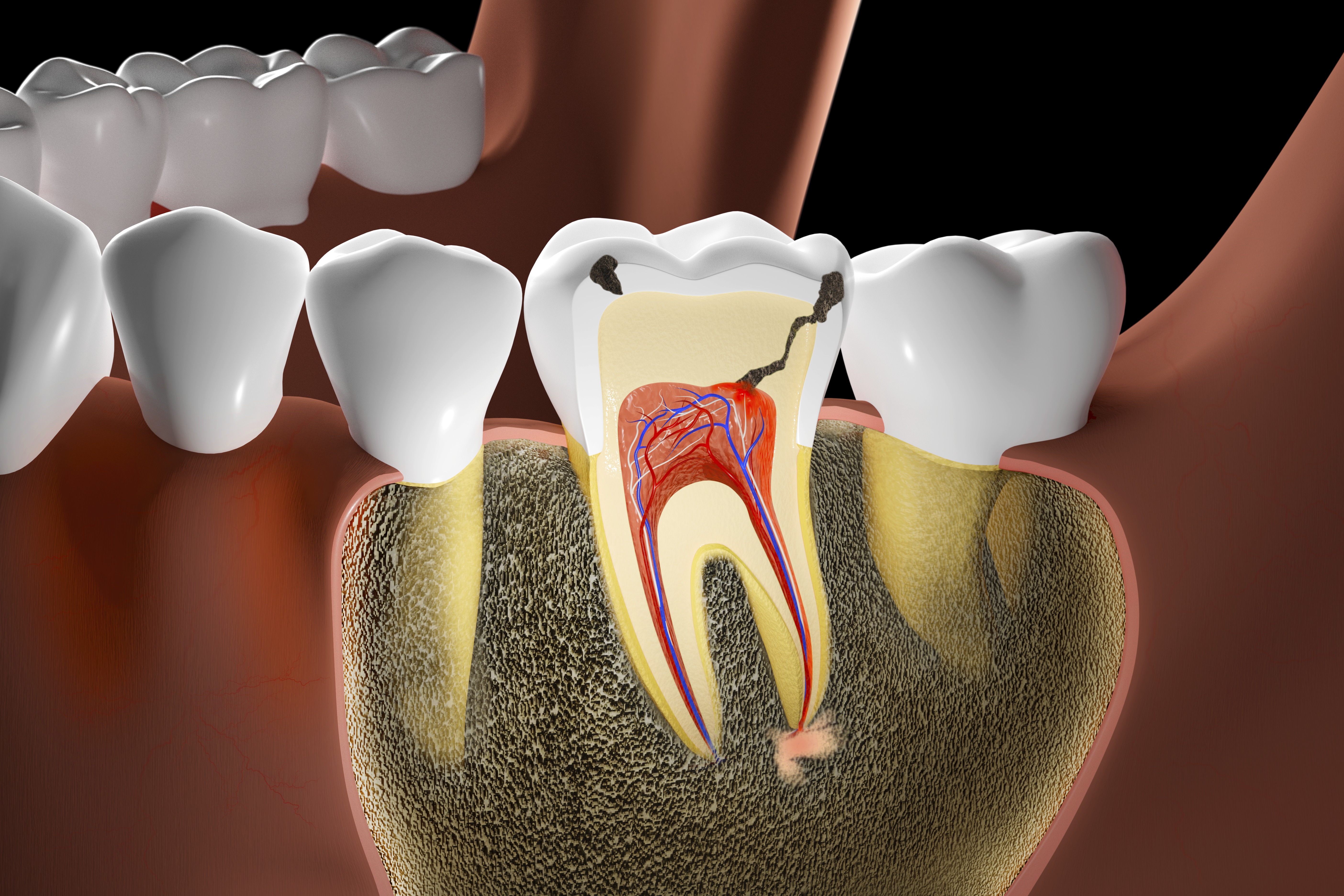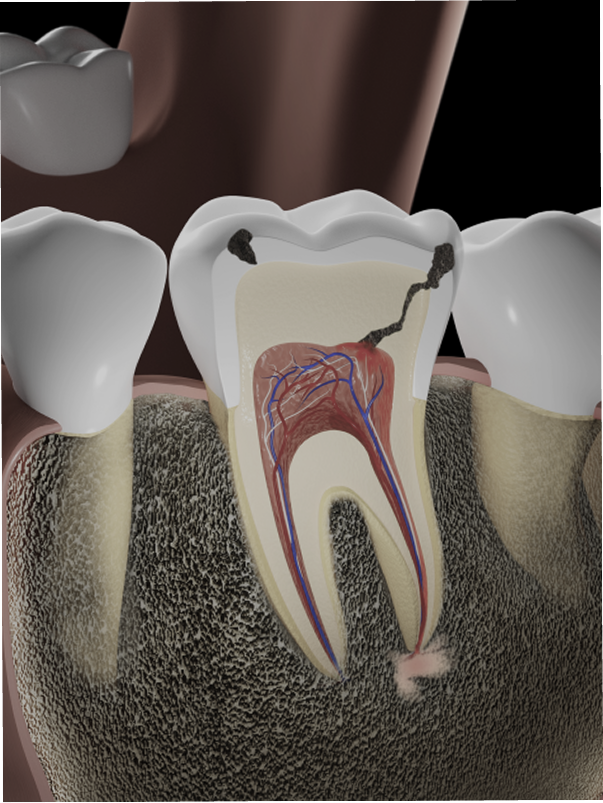 충치가 깊어져 치아 내부 신경까지 진행된 경우
